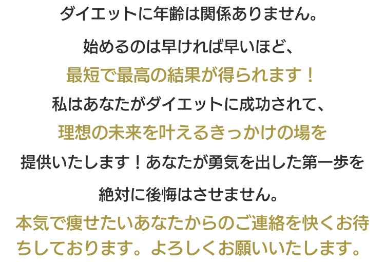 私はあなたのダイエット成功のために、本気でサポートさせていただいています。