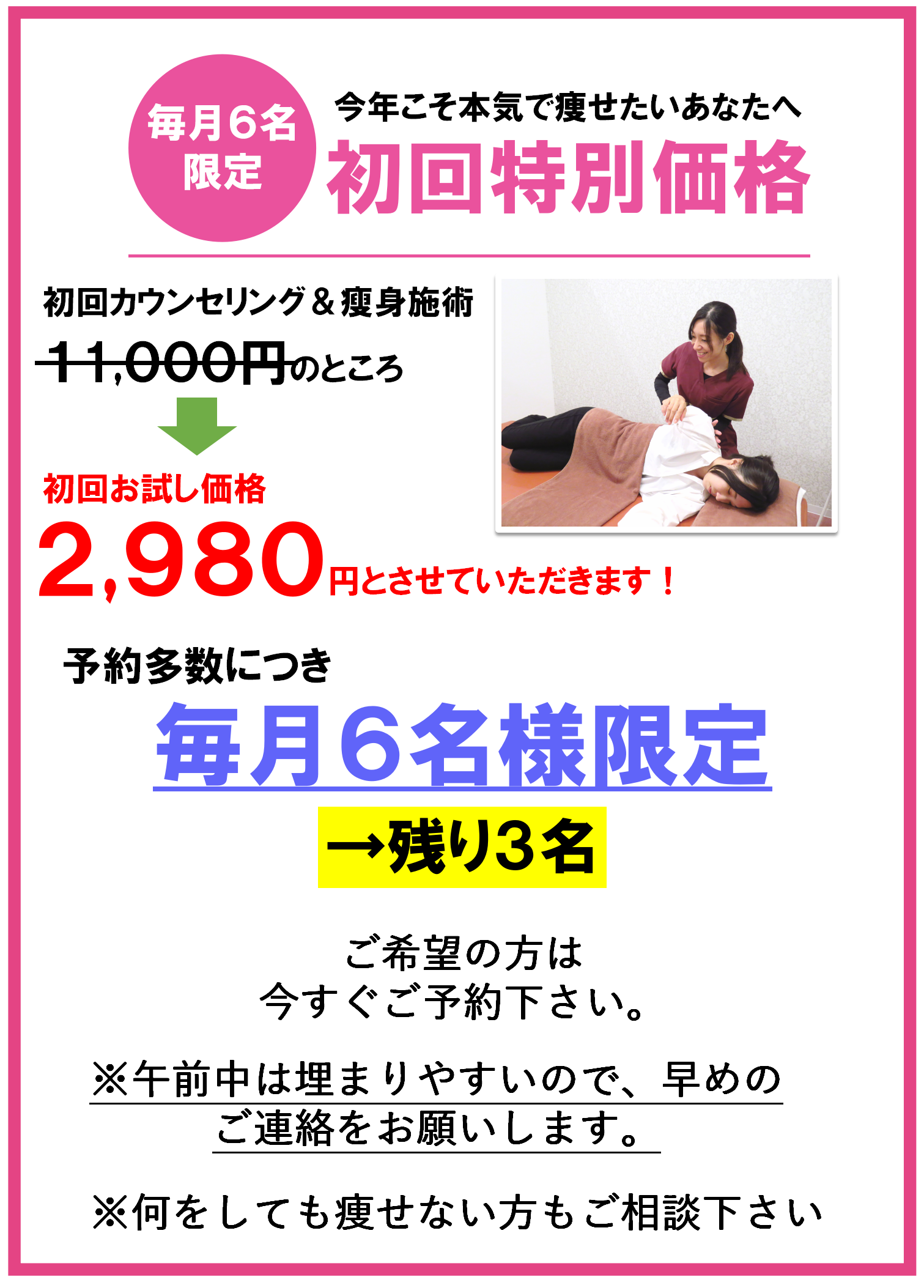 (現在予約が混みやすいため、新規の数を毎月6名限定としてご提供させていただいております。